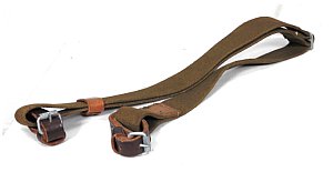 Used surplus Russian military sling features green web material and has leather dog collars on each end. These slings complete your Mosin Nagant rifle and fit all models with the sling throught stock configuraton. Slings can be adjusted to length for all models and shooters. This David's Collectibles surplus item will finish off your Mosin with the correct sling. Hurry, very small amount available.